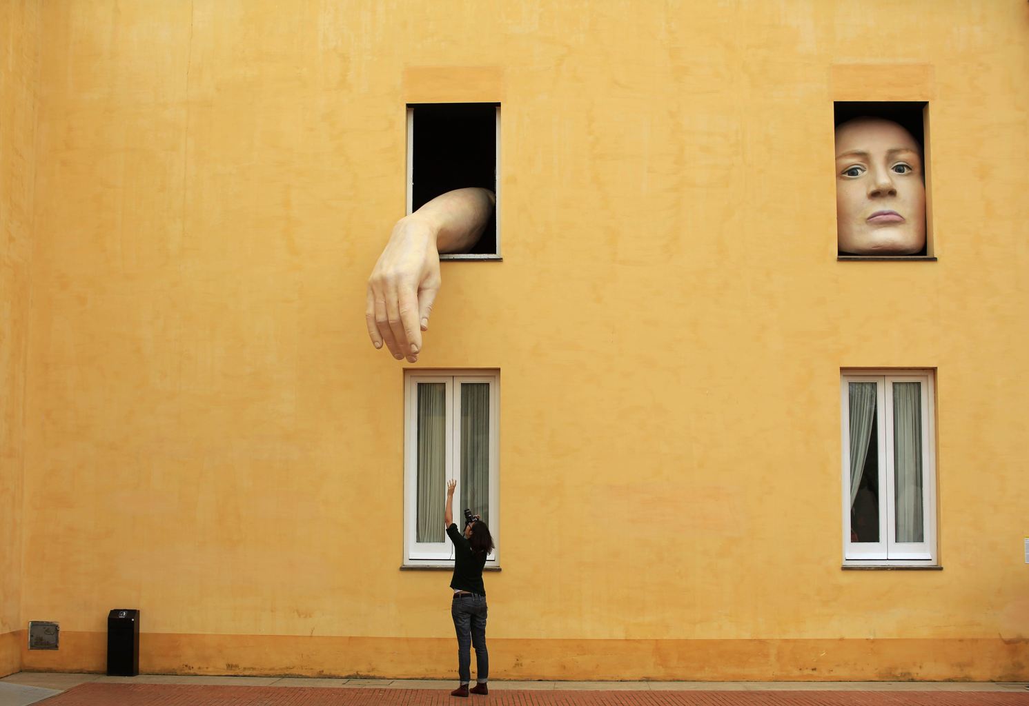 A woman takes pictures of art installation "Alice" by Spanish artist Cristina Lucas in the Andalusian Center of Contemporary Art in the Andalusian capital of Seville, southern Spain April 10, 2013.