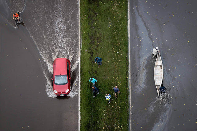 Thousands were evacuated from their homes and dozens are still stranded on rooftops, treetops and the roofs of city buses, local media report.
